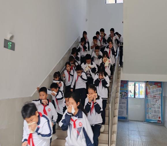 首先各班主任采用“示范+模擬+問(wèn)答”三步教學(xué)法開(kāi)展前置宣教:現(xiàn)場(chǎng)演示“沾濕毛巾對(duì)折三層捂口鼻、身體前傾60°躬身、步幅不超30厘米快步走”的標(biāo)準(zhǔn)動(dòng)作;組織學(xué)生在教室開(kāi)展預(yù)演,逐人糾正“捂鼻不嚴(yán)、躬身角度不足”等問(wèn)題;通過(guò)“火災(zāi)時(shí)能否坐電梯”“濃煙中如何判斷安全出口”等互動(dòng)問(wèn)答鞏固常識(shí),讓安全規(guī)范從“知曉”轉(zhuǎn)化為“熟練掌握”。